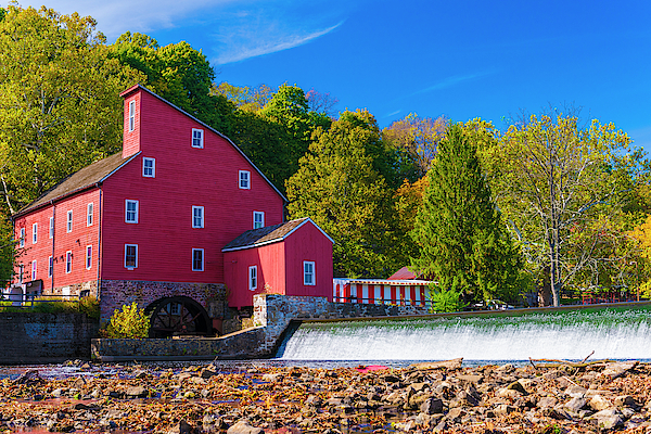 Photograph of the Red Mill gristmill in Clinton New Jersey in the Autumn complete with fall colors.